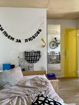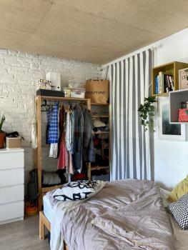 Квартира с минималистичным скандинавским дизайном. С мебелью. Есть небольшая кладовка со стеллажами, туда можно переместить хранение одежды, если захотите.