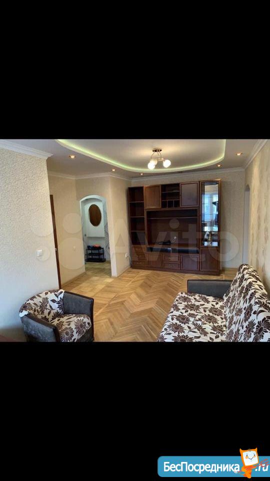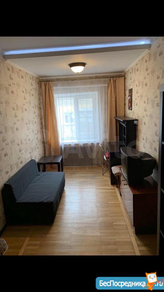 От собственника сдается двухкомнатная квартира со смежными комнатами все удобства с мебелью полностью с обстановкой состояние после ремонта 2дивана во дворе, возможно парковать машину 18000 руб. + коммунальные платежи