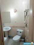 кухонный гарнитур, набор посуды.Ванная комната отделана кафельной плиткой,