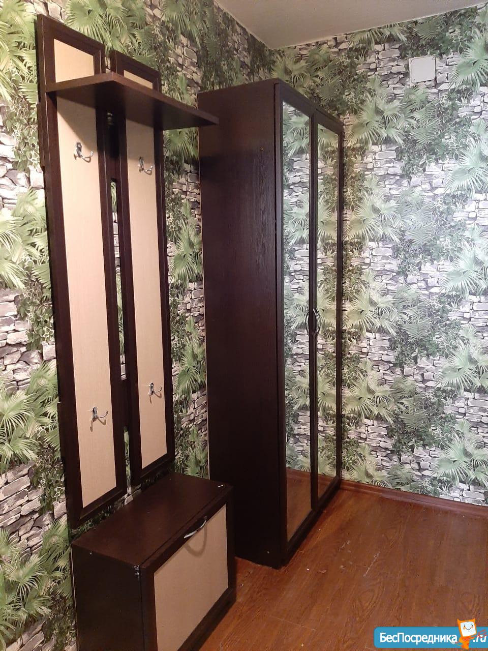 Внутри есть все для комфортного проживания: новый диван, шкаф-купе, комод с зеркалом,
