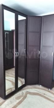 В комнате: комод, 3х-створчатый шкаф, кровать, стеллаж, стол с ящиками, стул.