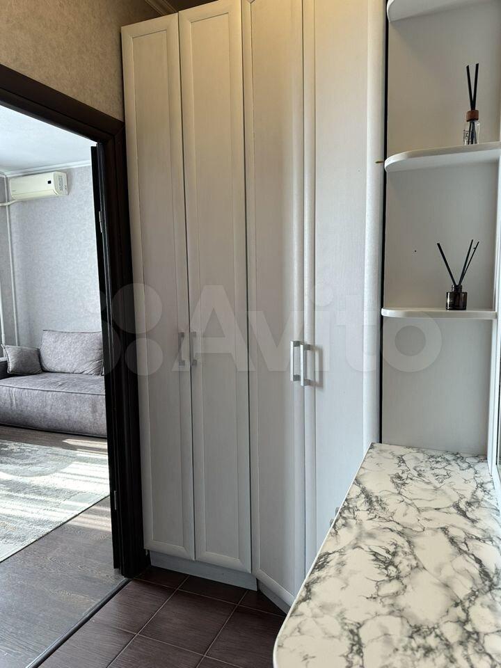 B квартире выполнен косметический ремонт, после ремонта первая сдача. Квартира оснащена всей необходимой техникой, холодильник, встроенная бытовая техника, чайник, посуда, тв. В жилой комнате есть двуспальная кровать и новый раскладной диван. Большое количество систем хранения.