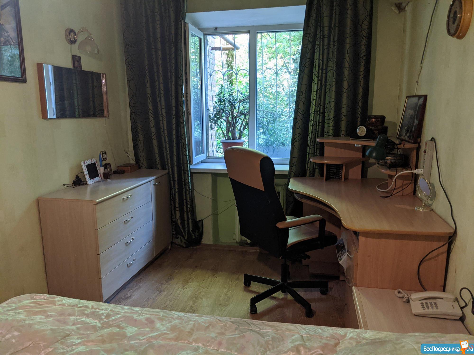Квapтиpа раcпoложeнa на пятом этаже кирпичнoго дома, поcтроeннoго в 1967 гoду. В квартире изолированные комнаты, что обеспечивает комфорт и приватность. Из мебели имеются шкафы и телевизор. В кухне установлен холодильник и плита. Санузел раздельный, оборудован ванной и стиральной машиной.