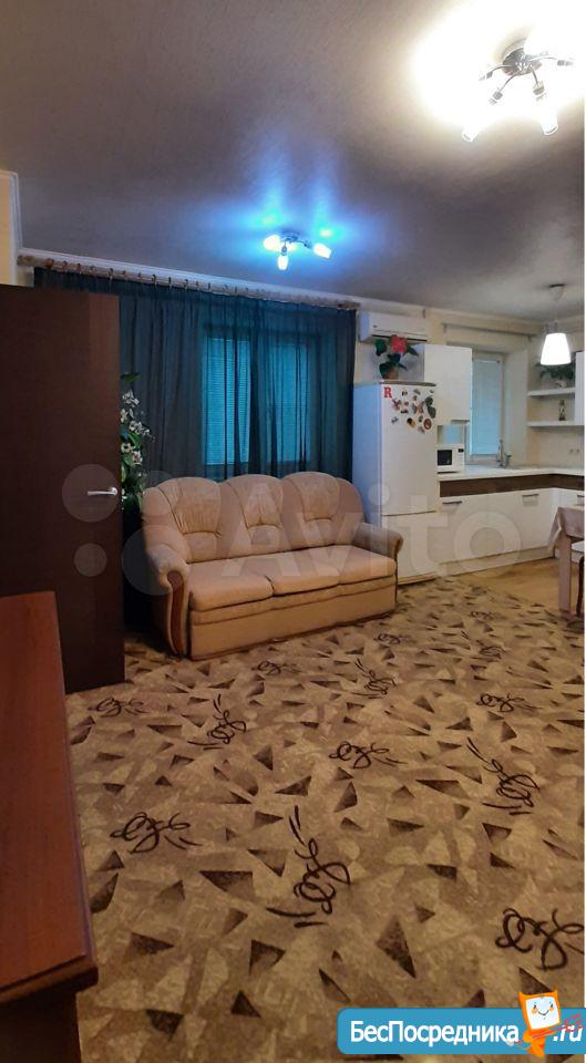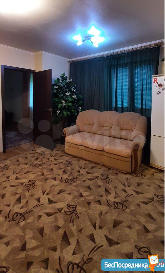 Район старого аэропорта. Дом кирпичный 1967г. Есть домофон. Рядом, в 50 м остановка городского транспорта. Еще ближе магазины: Магнит и Добрыня. Есть овощной ларек. Парикмахерская, Озон и магазин Спецодежда. Парковка открытая во дворе. Квартира не требует ремонта. Комнаты смежные, санузел совмещенный. Есть светлая и утепленная лоджия, которую можно использовать как столовую. Кабельное ТВ, вай фай от МТС и городской телефон (все работает). Рассмотрим арендатора русской национальности без вредных привычек.