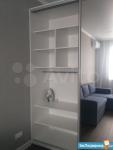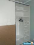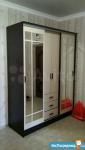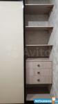 В коридоре: Большой шкаф для верхней одежды с небольшой тумбой 140х60, маленький встроенный шкаф с полками.