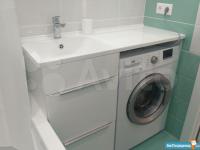 В ванной: Ванна, раковина со столешницей, стиральная машинка.