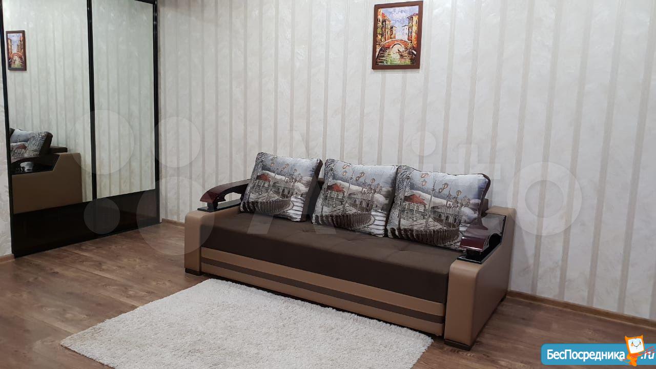 Оборудована всей необходимой бытовой техникой. Газ. Снабжена котлом на отопление и на воду. Двуспальный диван, 2 встроенных шкафа-купе, телевизор (на фото нет, был установлен позднее).Отличный вид из окна. Закрытая территория. Детали на фото. Вода и электричество оплачиваются дополнительно. WI-FI. По квартире сделана интернет-разводка.