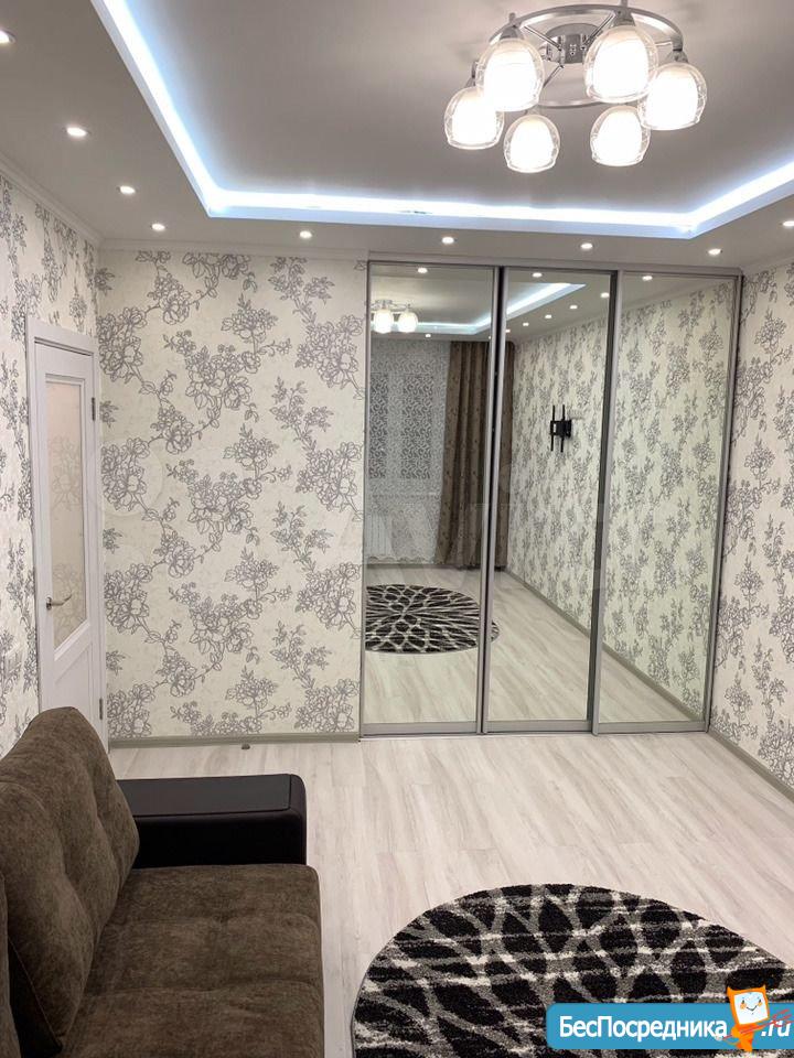 В квартире выполнен современный ремонт. Вся мебель и техника новые. В квартире имеется большое количество места для хранения (три больших шкафа под потолок).