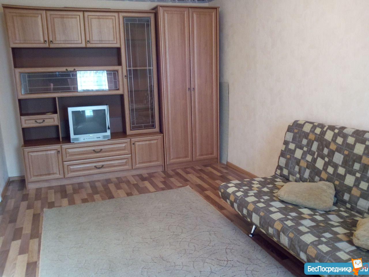 1 комн кв-ра 4/5 этаж на длительный срок. В квартире кондиционер, холодильник, стиральная машина, телевизор, пылесос, диван, шкаф, стол, балкон застеклен. До остановки 1 мин (не на проезжей), школа, аптека, магазины рядом.