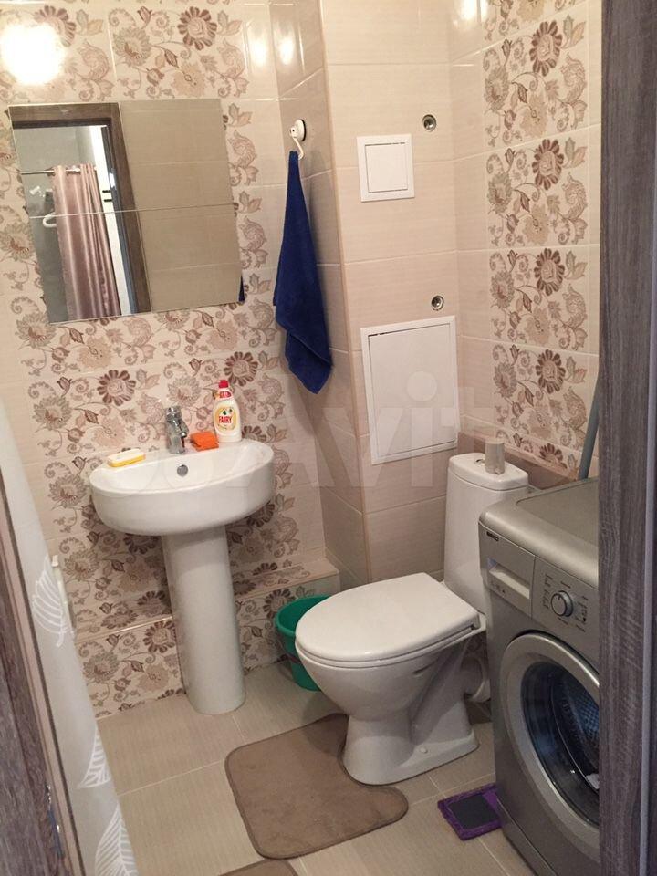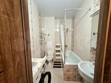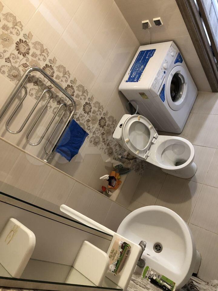 Ванна оборудована всем необходимым, стиральная машина и зеркало с тёплой подсветкой, новая сантехника.