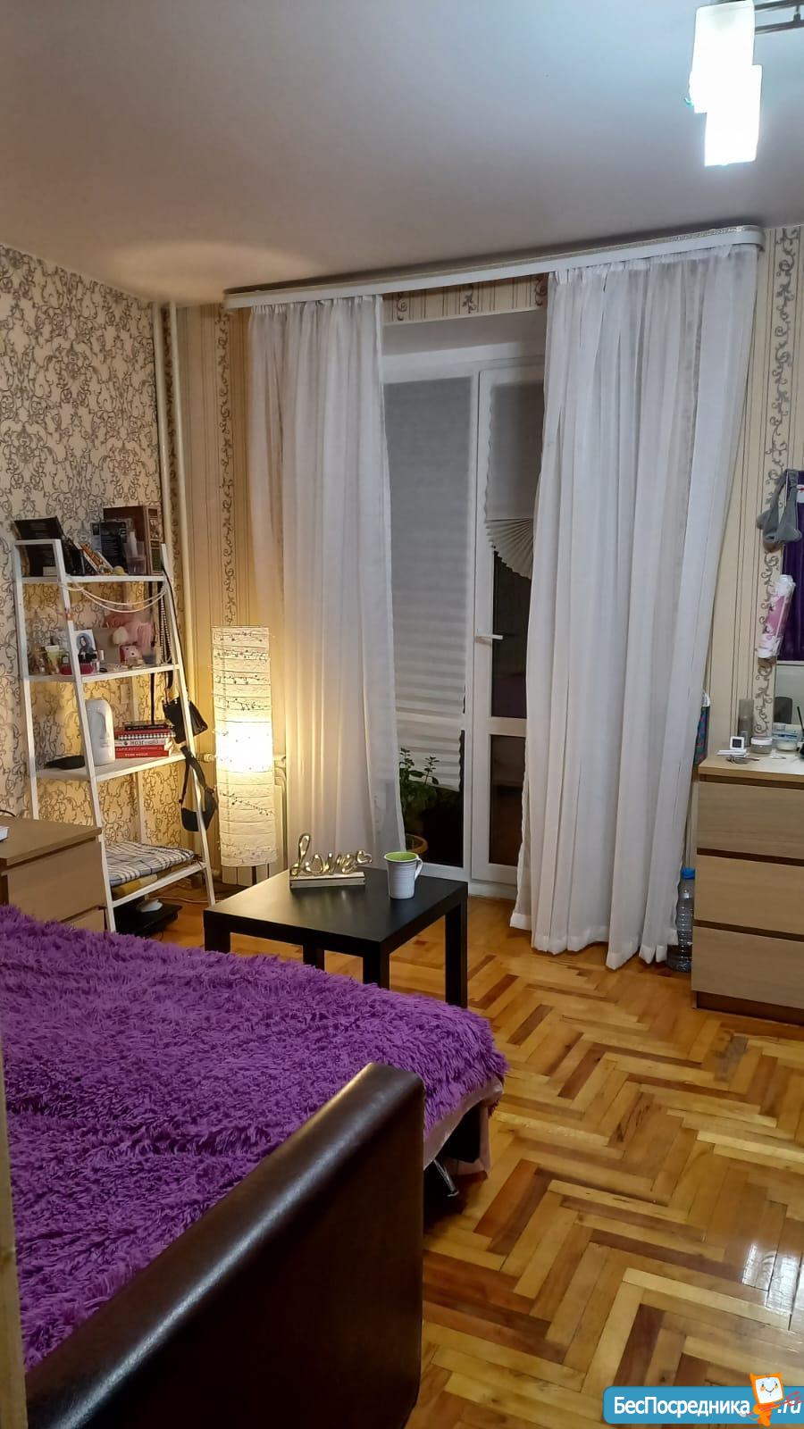 Сдаю на длительный срок просторную светлую комнату с балконом площадью 17 кв м в трёхкомнатной квартире.