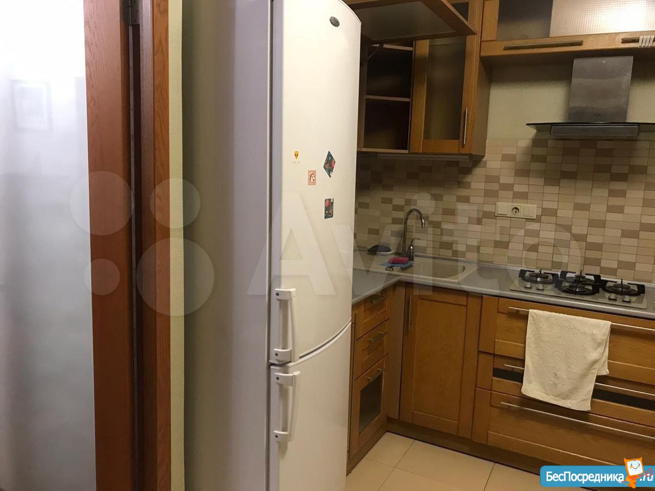 Два дивана. Стиральная машина, холодильник, кондиционер, встроенный кухонный гарнитур.