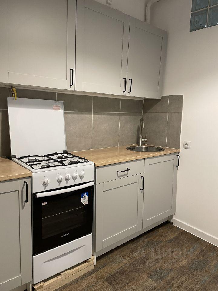 Кухня, совмещенная с гостиной-столовой. В гостиной диван (второе спальное место).