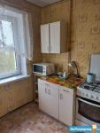 Квартира чистая и аккуратная. Есть встроенная кухня с газовой плитой, холодильником, микроволновкой и стиральной машиной. На кухне также расположен пружинный диван. Ванная совмещённая. В зале есть сплит, мебельная стенка, диван-кровать и раскладываемое в спальное место кресло. Имеется застеклённый балкон площадью около 3 кв.м. Есть встроенная кладовка для хранения вещей и верхней одежды.