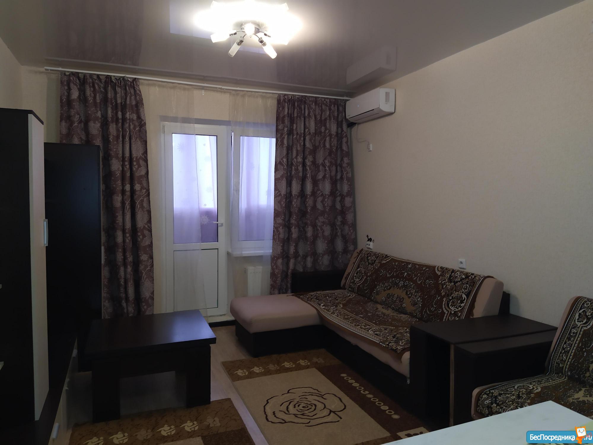 Сдам квартиру-студию(собственник),с хорошим,качественным ремонтом на длительный срок,минимум 6 месяцев 18000+коммунальные услуги.Квартира с панорамным видом,находится в жк Суворовский.Рядом расположен магазин Магнит-семейный,остановка автотранспорта,прогулочные аллеи,поликлиника.Квартира очень уютная,балкон утеплен,имеется 2 радиатора отопления,сплит-система,вместительный шкаф-купе,большой холодильник,стиральная машина,духовка,варочная панель.Квартира не сдавалась.Интернет подведен,можно при желании включить.Сдам порядочным жильцам,гражданам РФ,славянам без животных.Квартира готова к сдаче с 17сентября.Агенствам попрошу не беспокоить.