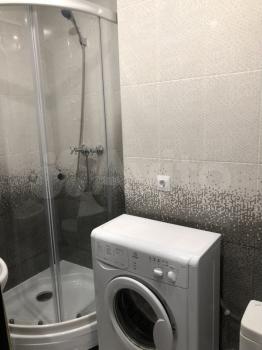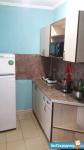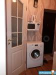 В квартире стоит просторная двухспальная кровать, тумбочка, шкаф-купе, установлен кондиционер. Присутствует стол-книжка, при необходимости можно принять гостей. Кухня маленькая, но со всем необходимым: плита, холодильник, духовка. Так же стоит стиральная машина.