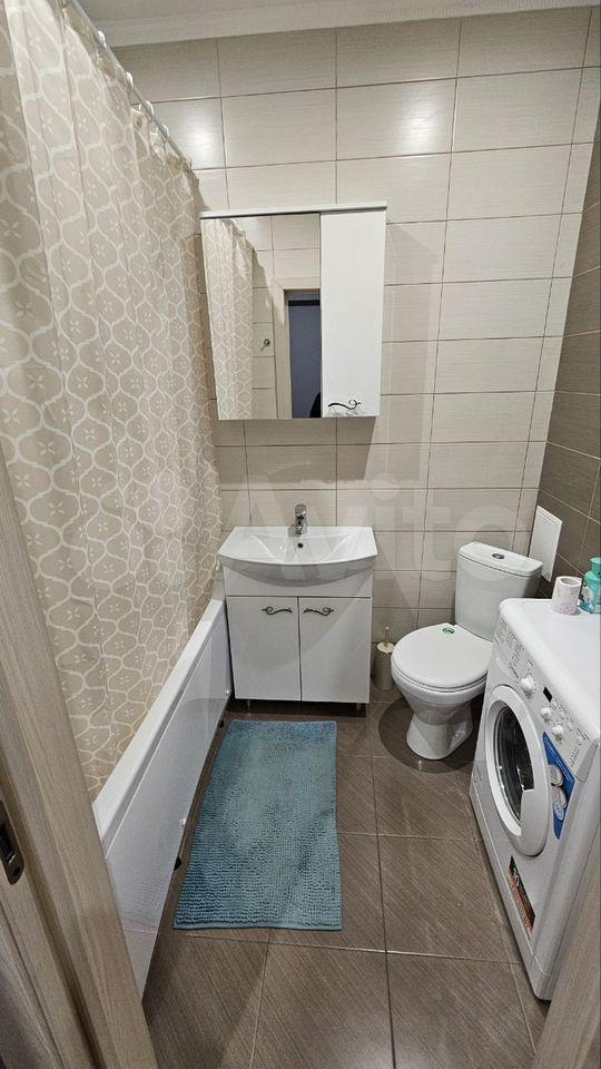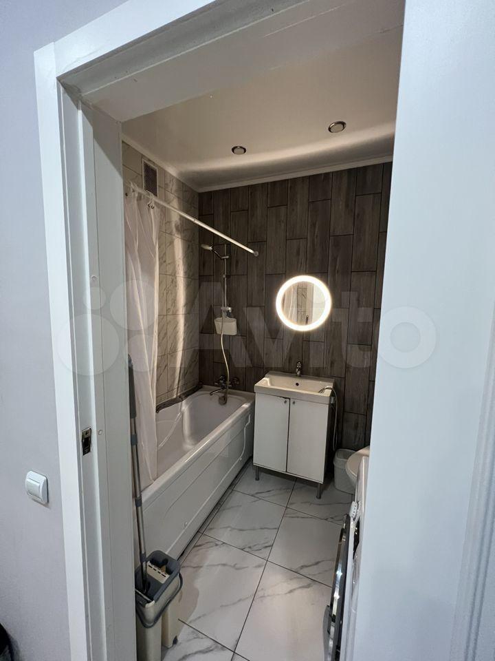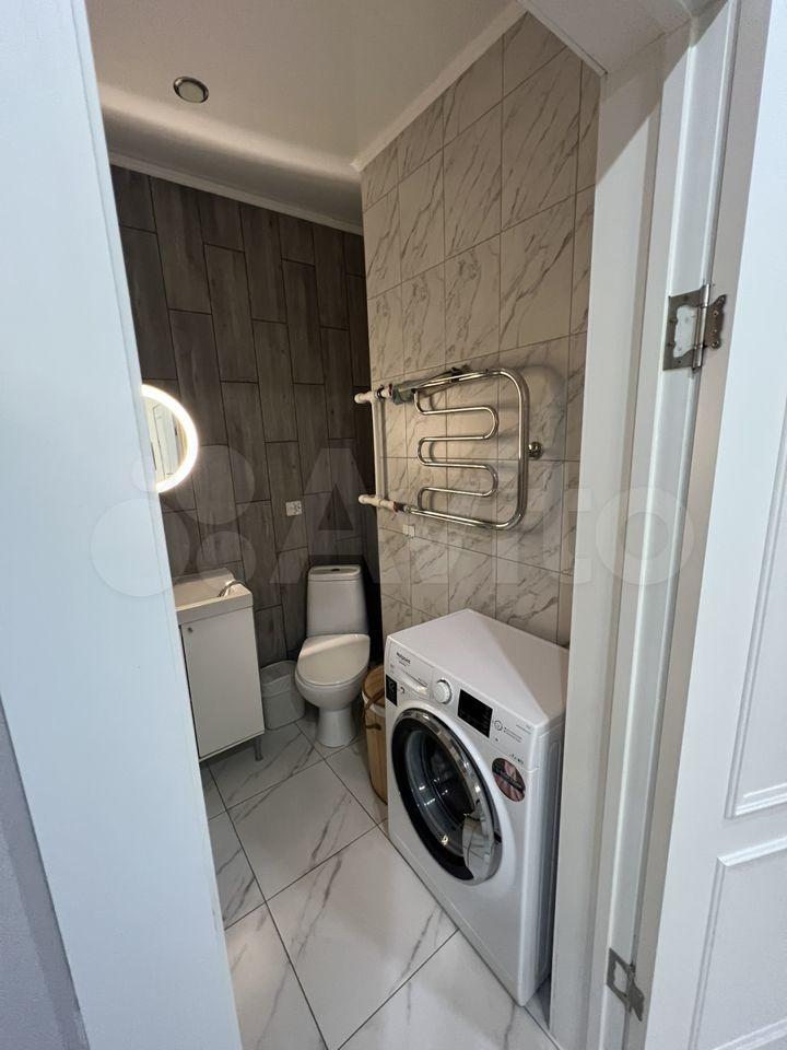 В студии сделан качественный дизайнерский ремонт. В комнате есть вся необходимая мебель, а также современная техника: кондиционер, холодильник и стиральная машина. Санузел совмещенный, оборудован ванной. Пространство продумано до мелочей, чтобы вам было максимально комфортно жить.