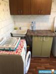 2 комнаты по 17м2 , в одной комнате 2х спальная кровать, шкаф для вещей, маленький телевизор, 2-я комната ; 2 кресла, стол, шкаф для посуды, кондиционер, балкон(не застеклен), кухня шкаф для посуды, микроволновая печь, газовая печь, стол. санузел совмещенный- ванна, стиральная машина, унитаз. Холодильник стоит в коридоре.