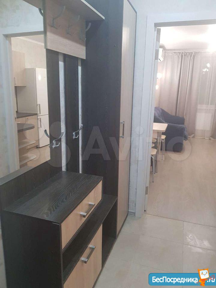 Первая сдача. Новый дом. Евро однушка. Закрывающаяся спальня с двухспальной кроватью 160*200, небольшой раскладывающиеся диванчик в гостиной 140*200. Балкон. Холодильник, стиральная машина, микроволновка, чайник, даухкомфорная электрическая варочная панель. Стоимость коммуналки не входит в сумму аренды.