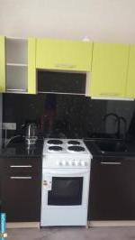 Новая техника: холодильник, электрическая плита, микроволновка, сплит, стиральная машина. В комнате новый двуспальный диван, есть место еще для одного спального места.
