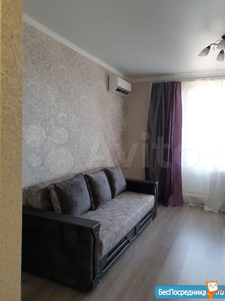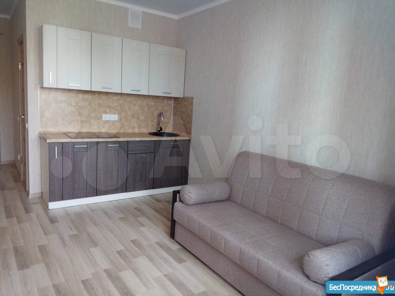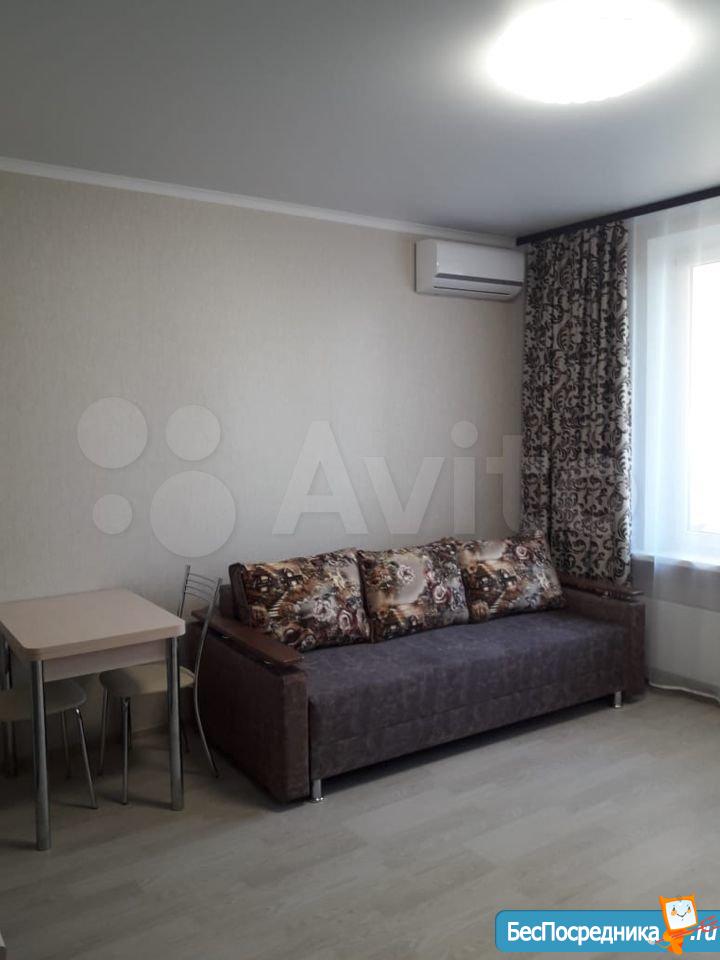 Сдаю квартиру-студию в новом доме (сдан в феврале 2020 года). Тихие, спокойные соседи. Рядом Мгнит, остановка городского транспорта. Есть кондиционер, стиралка, холодильник, ТВ.