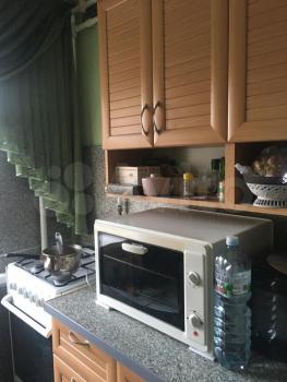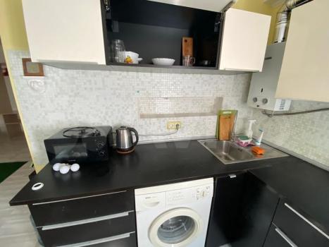 санузел - совмещённый, мебель - кухня, хранение одежды, спальные места, холодильник, плита, микроволновка, стиральная машина, водонагреватель.