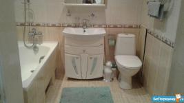 Спальни соединены выходом на просторную лоджию, откуда открывается вид на тихий переулок Соляной, но имеют индивидуальные входы из коридора. Санузел совмещённый просторный, расположен очень удобно между входом на кухню и в спальни. Установлен водонагреватель и стиральная машина.