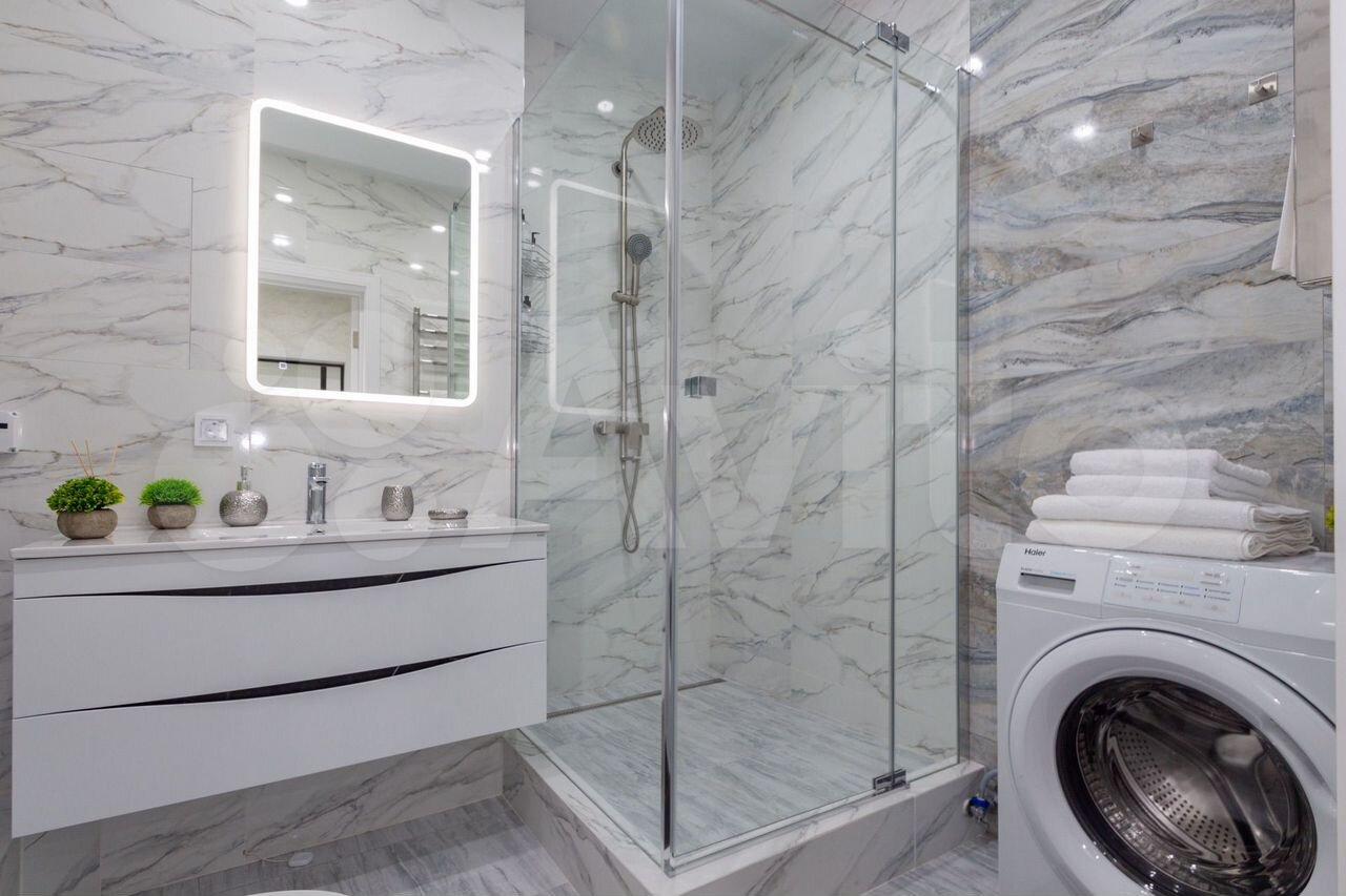 Вся мебель в квартире изготовлена по индивидуальному заказу, сантехника премиальных брендов и качественная техника.