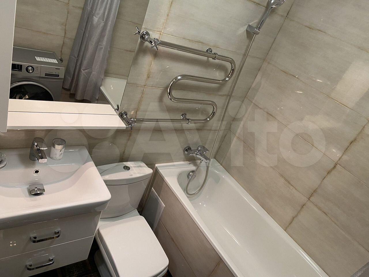 Мебель, сантехника и бытовая техника в наличии. Квартира оформлена в спокойных светлых тонах.