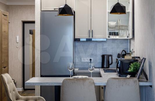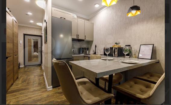 Кухня с ПРОФЕССИОНАЛЬНОЙ техникой (варочной панелью на 5 зон, духовой шкаф, вместительный двухкамерный холодильник, установлена посудомоечная машина 60см). Так же микроволновая печь, встраиваемая выдвижная розетка, кофемашина, электрический чайник, набор посуды для комфортного проживания, оборудована уютная обеденная зона.