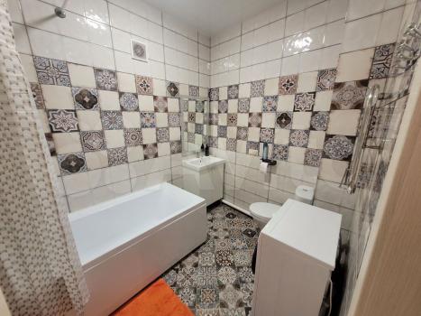 B квaртиpe выполнен коcметичeский рeмонт. Куxня оснaщeна холодильником, микроволновкой и индукционной плитой. Санузел совмещённый, в нём установлена стиральная машина.