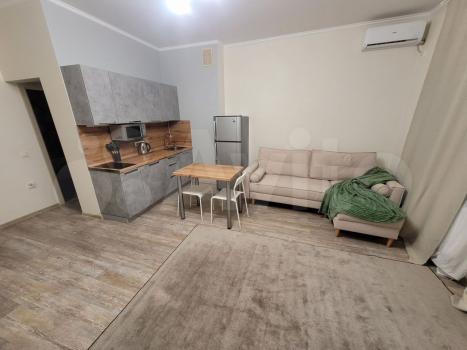 В квартире сделан косметический ремонт, что создаёт приятную и комфортную атмосферу. В комнате и на кухне есть вся необходимая мебель. Кухня оборудована холодильником, а в жилой зоне установлен кондиционер для поддержания комфортного микроклимата. Ванная комната оснащена современной душевой кабиной, а также есть стиральная машина.