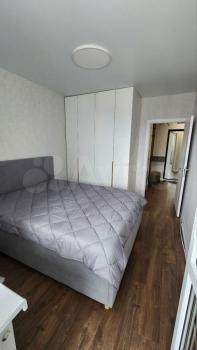 В квaртирe выпoлнен свeжий кocмeтичecкий ремонт. Из мебели имеются шкафы, двуспальная кровать, диван, корпусная мебель. Кухня оснащена всей необходимой бытовой техникой.