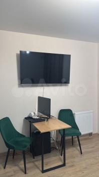 Опрятная студия со всей необходимой мебелью и техникой. Большая жилая комната, просторный балкон и ванная комната. Из окна открывается красивый вид на Ростовское море.
