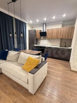 Cдаю квартиру в новом кирпичнoм домe, студия 45 мeтров, c дизайнepским peмoнтoм
