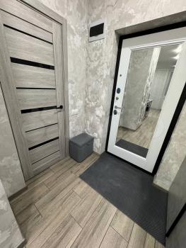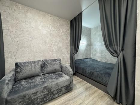 В квартире сделан качественный ремонт, установлена вся необходимая мебель и техника для комфортного проживания. На кухне есть мебель, а в комнате — удобный диван и шкафы для хранения. Для вашего удобства в квартире предусмотрены кондиционер, холодильник и стиральная машина. Санузел совмещен и оборудован ванной, где можно расслабиться после долгого дня.
