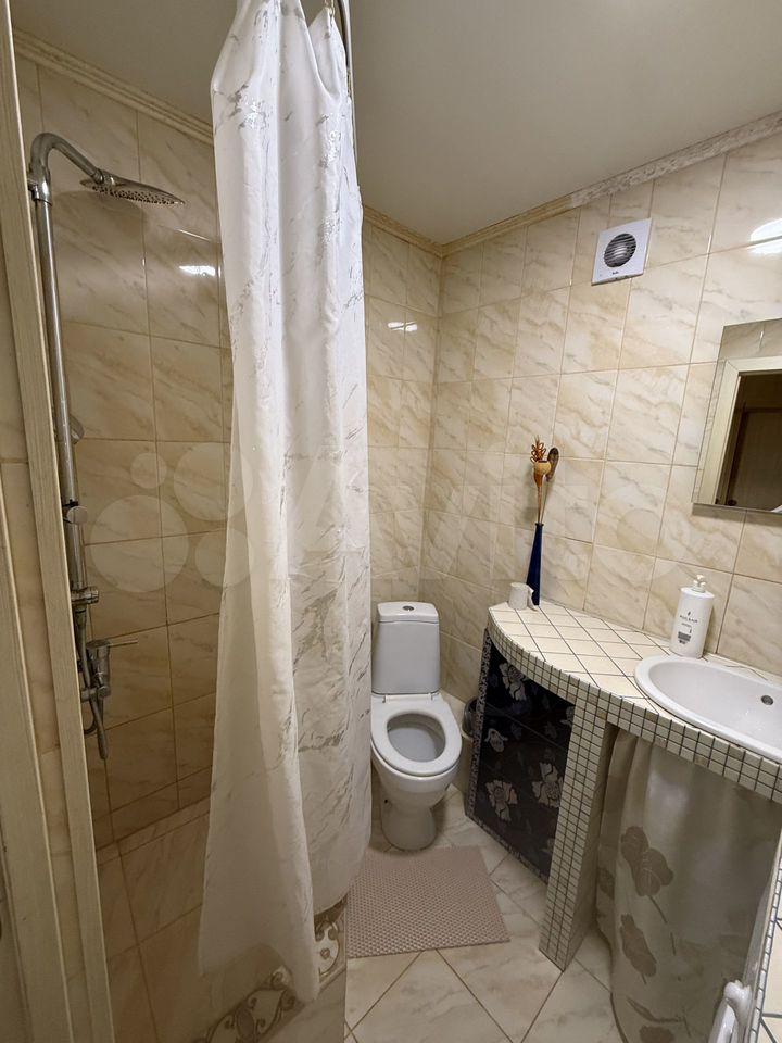 В квартире выполнен косметический ремонт. Комната светлая и просторная, оборудована шкафом и двуспальным диваном, имеется сплит система. Кухня оснащена необходимой бытовой техникой, включая холодильник, плиту, стиральную машину. Санузел совмещённый, с современной сантехникой и душевой кабиной.
